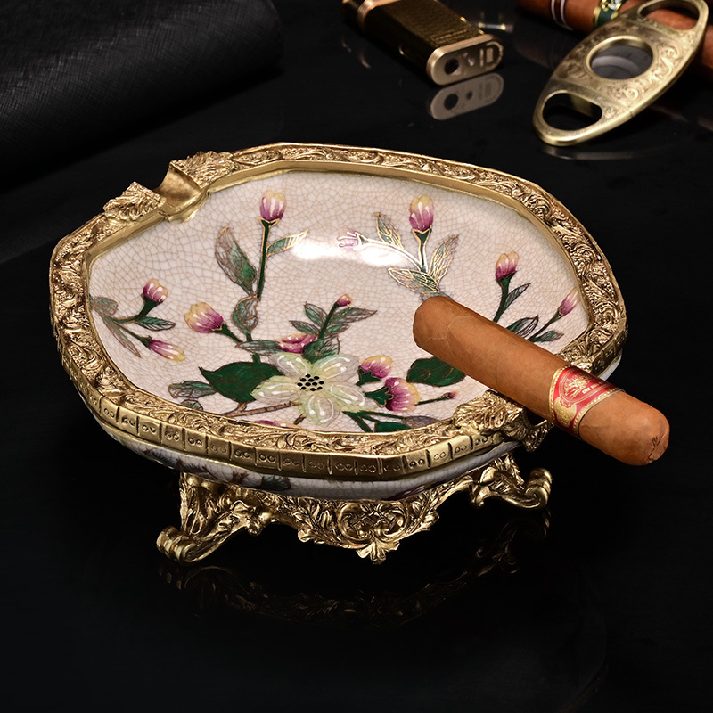 ナスの竜のシガーの灰皿の手作りの景徳鎮の骨の磁器は銅のヨーロッパ式の個性のアイデアのCLG-21CY4を挿し込みます。