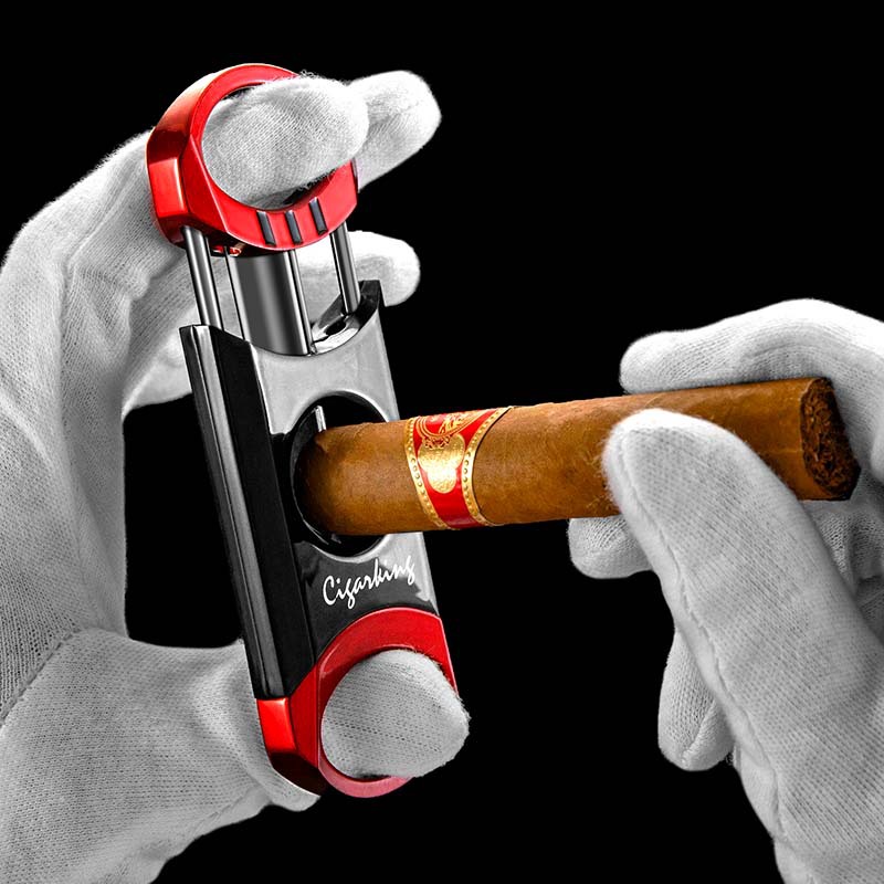 Cigarloongナス龍シガーカット鋭利で滑らかなシガー自動プルリングv型ハサミ携帯シガーはさみ
