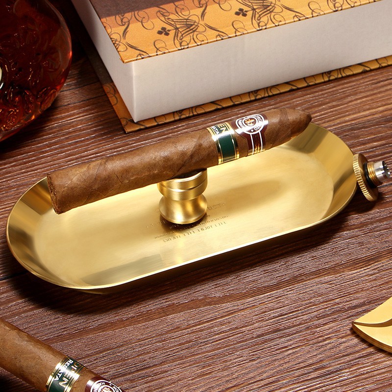 ナスの竜の金色の軽い豪華なシガーの灰皿の古銅のシンプルな個性のファッションの現代の鋭利なシガーのドリルの煙はタバコの器具を託します。