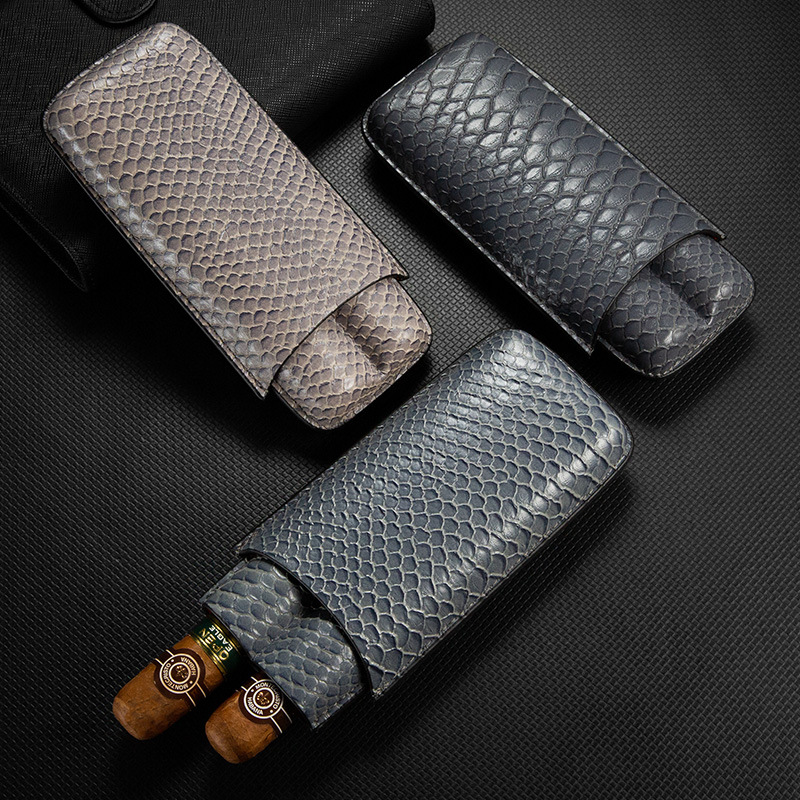 Cigarloongナスの葉巻のカバーの牛革の生地の携帯のシガーのタバコの部品の2本は保湿のタバコの箱を詰めます。