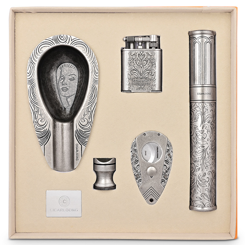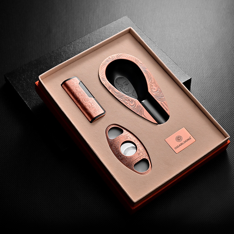 Cigarloonナス竜シガーカット大口径灰皿防風スプレーライター三点セットCL-TZ249
