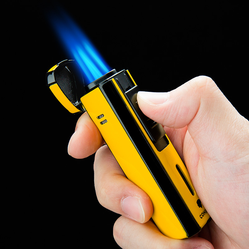 シガーライター防風インフレータブル三管直沖ブルー炎金属個性創意携帯ライターシガードリル付き