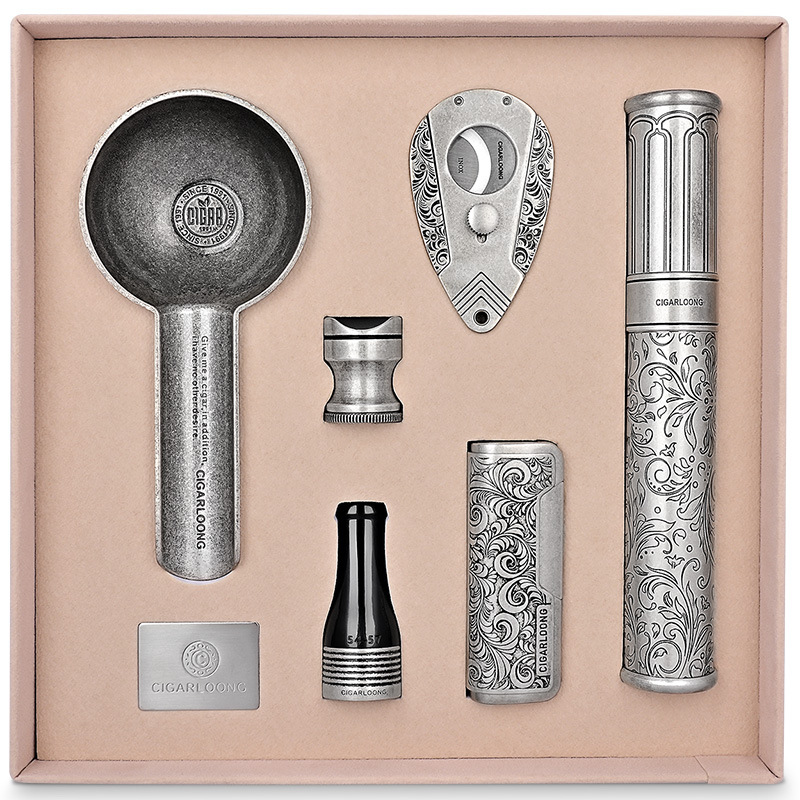 CIGARLOONGナスの竜のシガーの煙具のセットの鋭利なシガーは灰皿のシガーの管の6セットのギフトボックスを切ります。