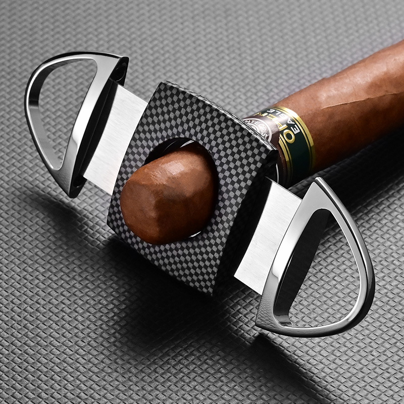 ナスの竜のシガーは鋭利な双刃を切って鋼の多機能のシガーの穴を開ける器の炭素繊維の紋様の携帯の刀のはさみを刺繍しません。