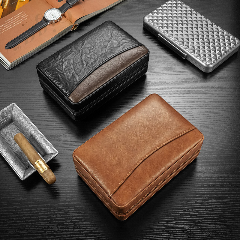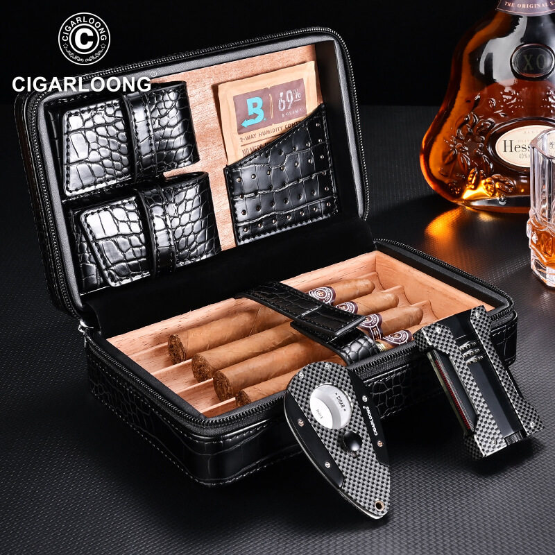 Cigarloongガロンシガーケース保湿ポータブルシガー保湿ケース牛革多機能シガーケースセット