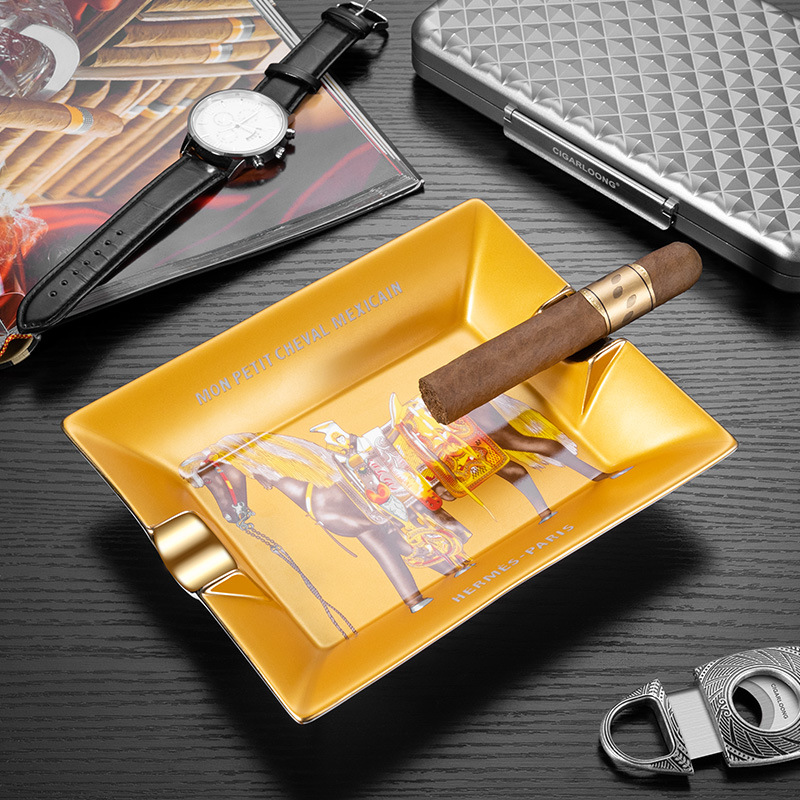 シガー灰皿陶磁器軍馬灰皿大口径二槽設計亮金描辺芸術礼箱CG-24K5