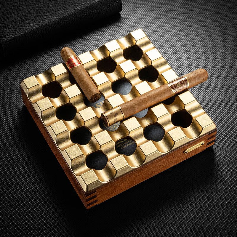 ナス竜シガー灰皿大口径煙槽滑り止め金属実木シガー灰皿CL-2020金色