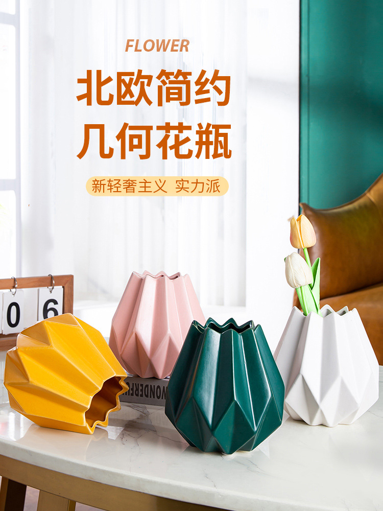 北欧風折り紙の幾何学的な乾いた花のデスクトップは陶磁器の花瓶のテレビのキャビネットのホテルの柔らかい服を育てます。