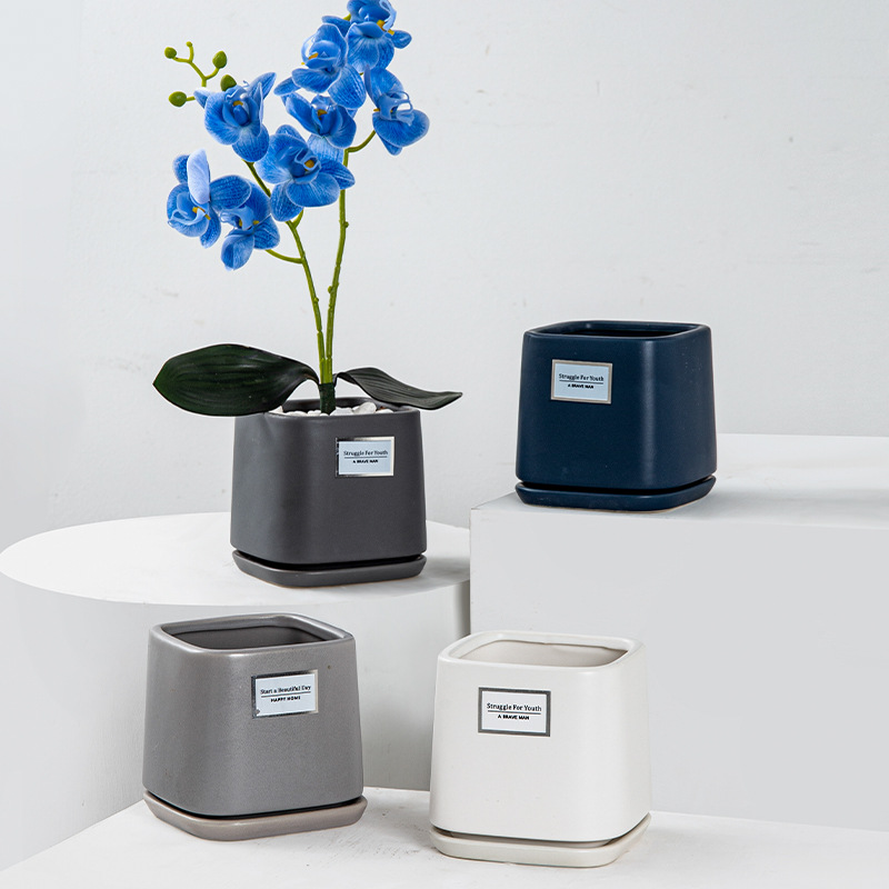 オーダーメードの植木鉢の陶磁器のヨーロッパ式の個性の四角形の小さい盆栽の家庭のデスクトップの多肉植物の花のモランディの植木鉢