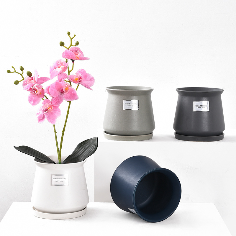 北欧の植木鉢陶磁器のトレー付きのシンプルな個性的な家庭装飾デスクトップの緑羅多肉胡蝶蘭植木鉢をカスタマイズします。