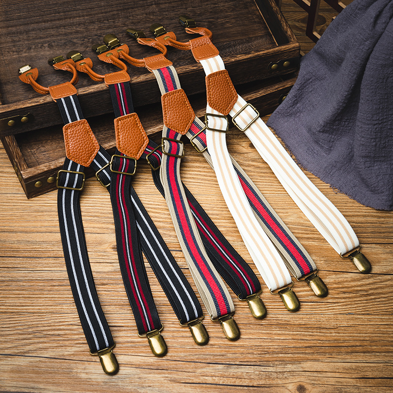 レトロレトロ三クリップ滑り止め弾力ストラップ大人男女通用y字型テンションストラップクリップ