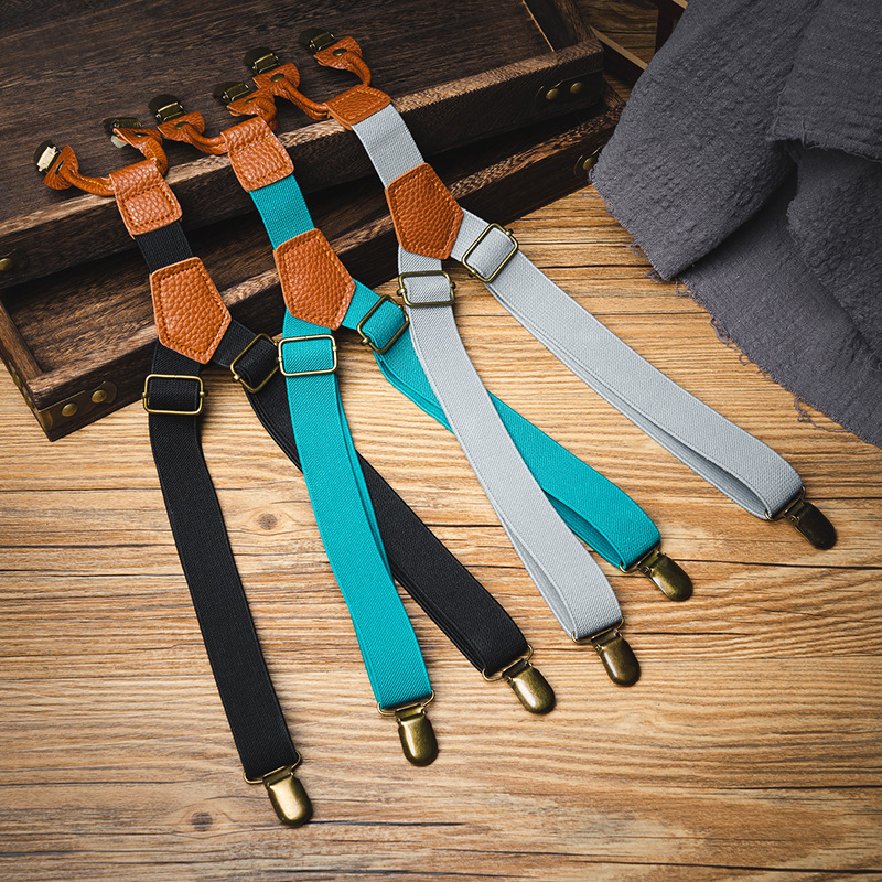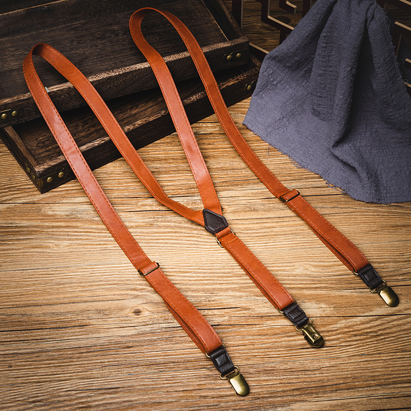 滑り止め三クリップ強力吊りズボン男性共通pu皮質カジュアルズボンストラップ付きレトロな太った人のストラップ
