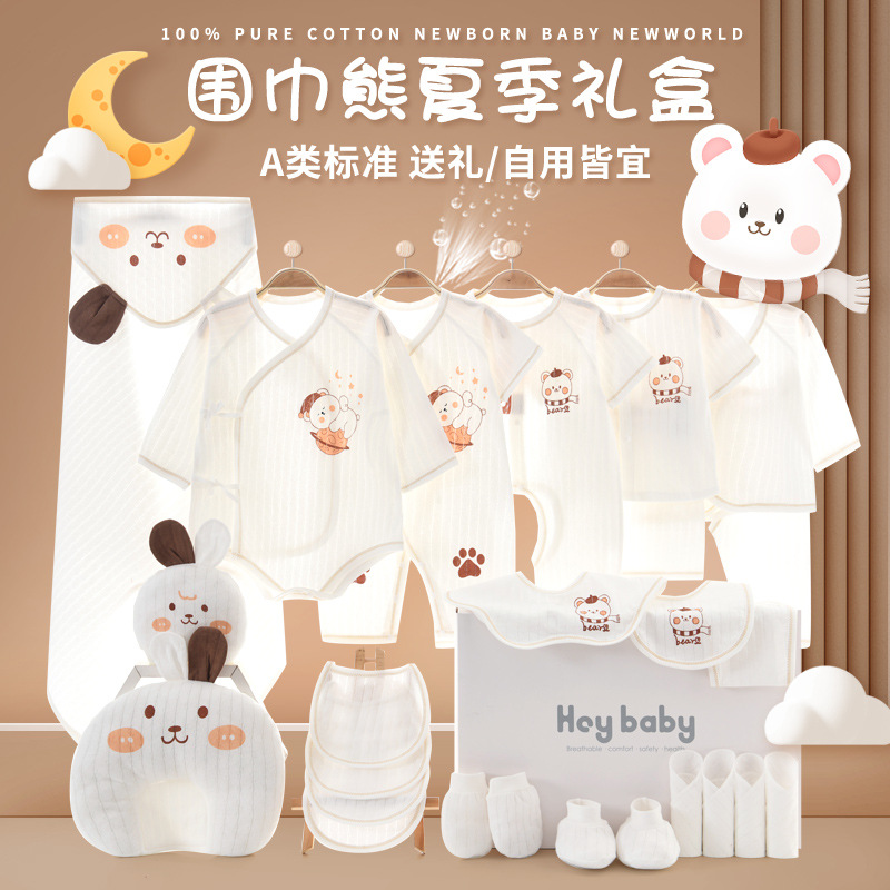 夏の新生児ギフトボックス純綿生まれたばかりの男女赤ちゃんの薄い赤ちゃん服満月プレゼント用品セット