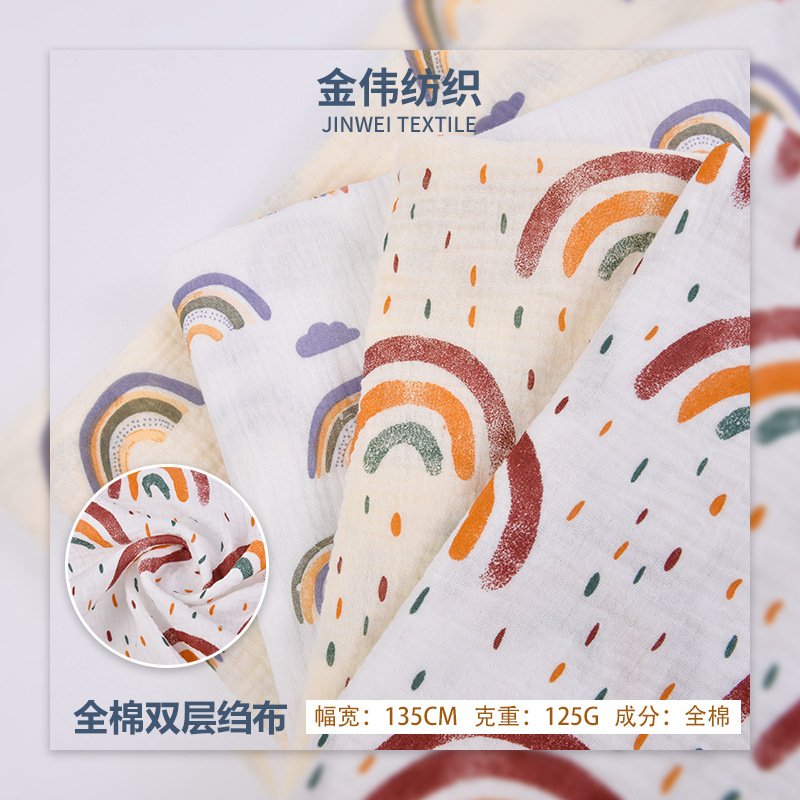コットン二重クレープレインボーガーゼプリント二重ガーゼ子供用唾タオル毛布生地