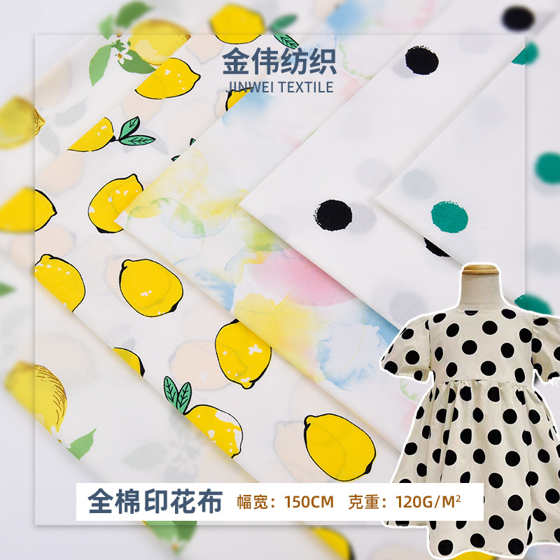 新メーカーは全綿プリント生地の高密府シルク60*140*120童装ワンピース生地を提供している