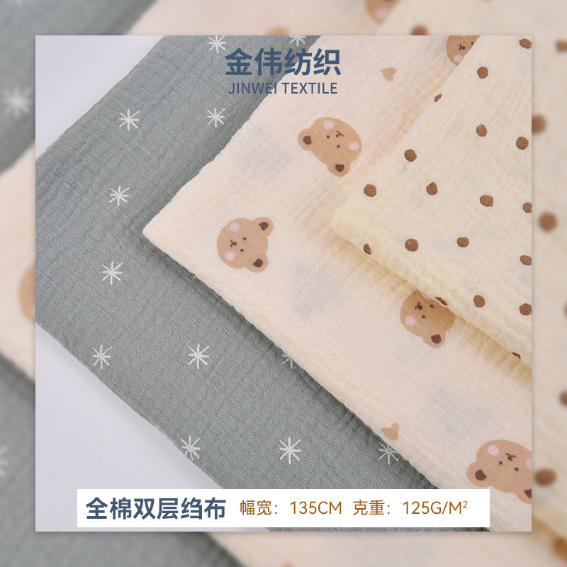 純綿二重クレープ二重ガーゼプリント綿糸パジャマ生地子供用よだれタオル毛布生地