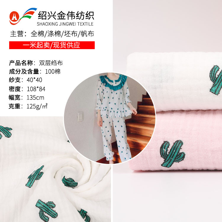 40本綿二重ガーゼ生地サボテン花型クレープ月子服パジャマ子供服生地