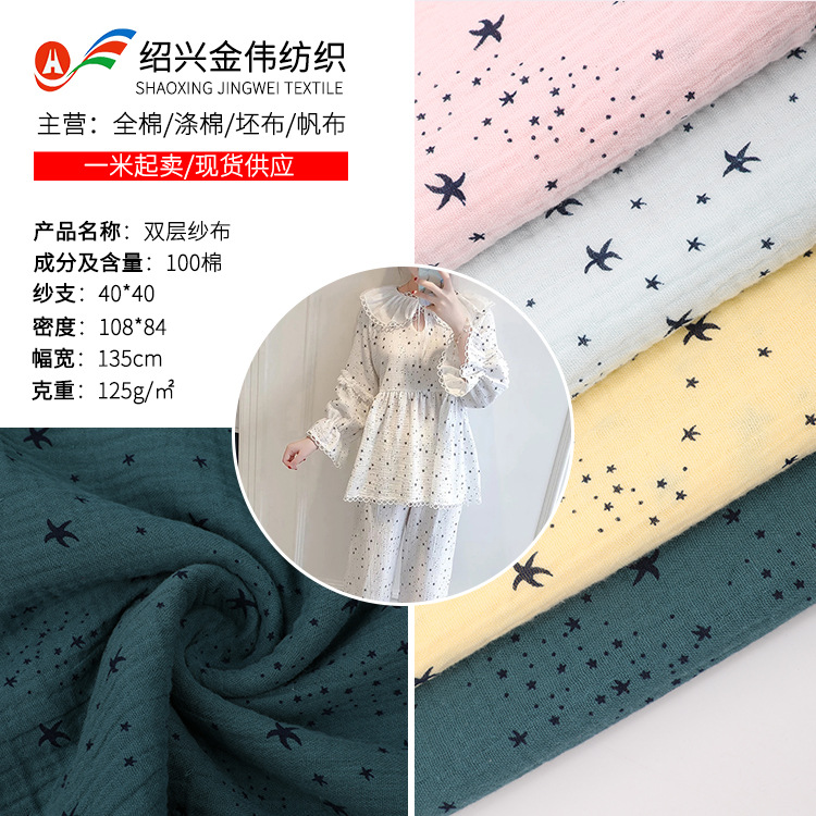 綿二重ガーゼ縮み生地星模様植物プリントパジャマ家キャミソール生地