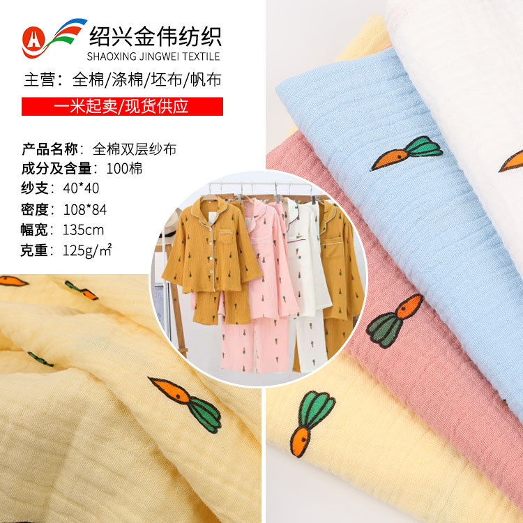 純綿二重ガーゼ縮みニンジンプリント生地現物ホームウェアパジャマ子供服ワンピース生地