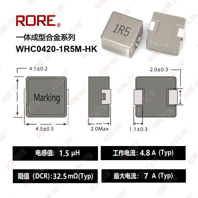 メーカー直販パッチ一体成形インダクタンス大電流パワーコイルWHC0420-1R5M