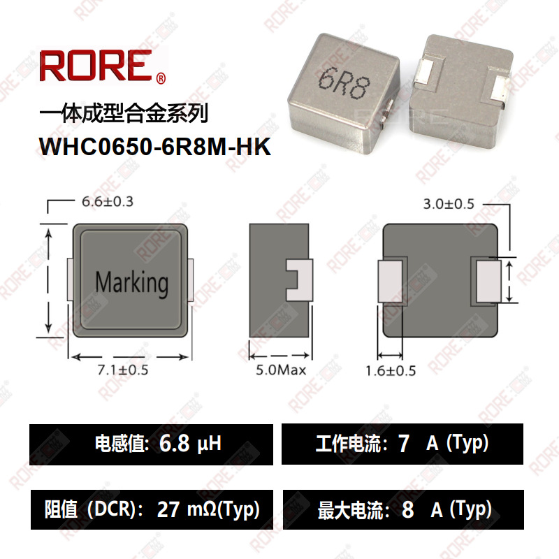メーカー直販一体成形大電流パッチパワーインダクタWHC0650-6R8M