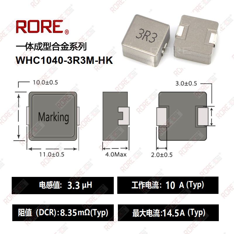 一体成形大電流パッチパワーインダクタンスWHC1040-3R3M10 * 10mm 3.3uhを供給する