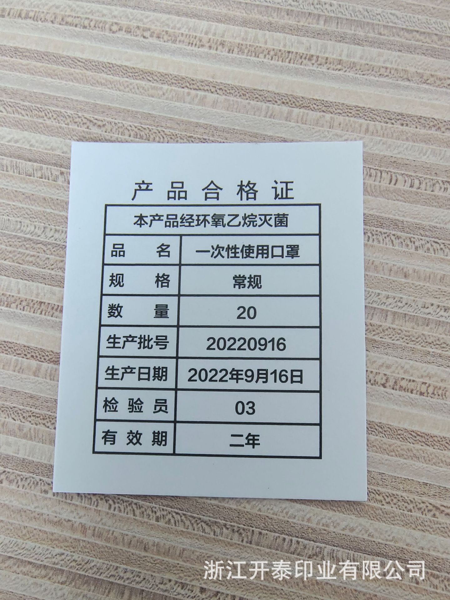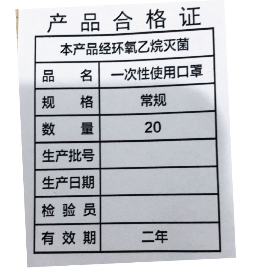 現物新日付使い捨てマスク合格証20個のラベルは80gの二重テープでカスタマイズできる