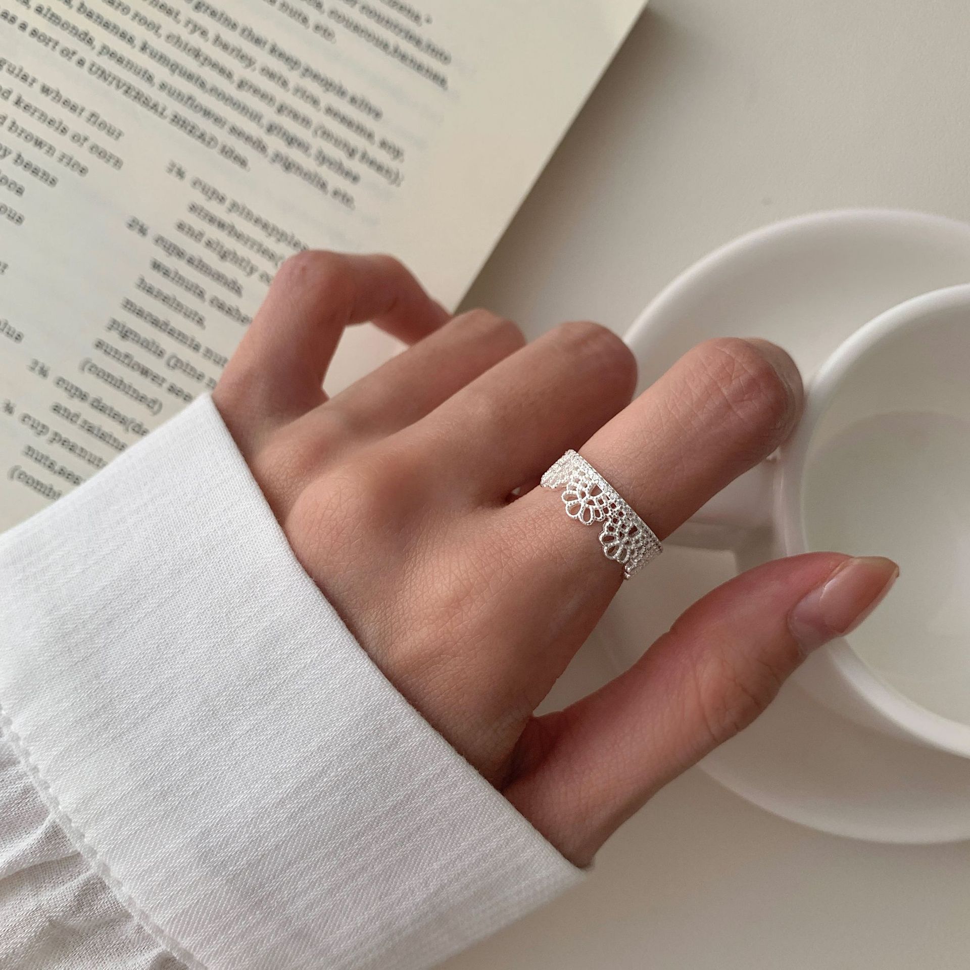 S925 スターリングシルバーレースリング女性のレトロ韓国ライト高級ハイエンドニッチデザインリトルレッドブックリング