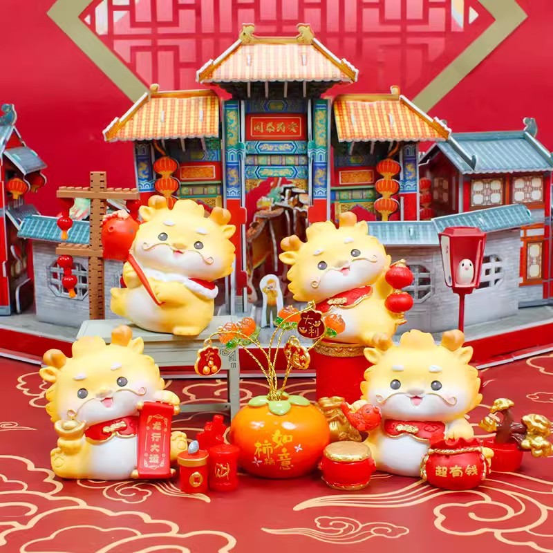 旧正月の生肖のマスコットの公仔の竜宝の国の潮の手はアイデアのデスクトップを作って車を飾って竜年の贈り物を並べます。