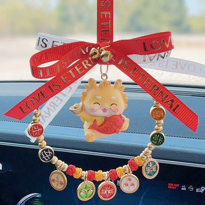 自動車ストラップ車内ストラップ2024新作生肖龍年マスコット車上バックミラーペンダント車載ストラップ
