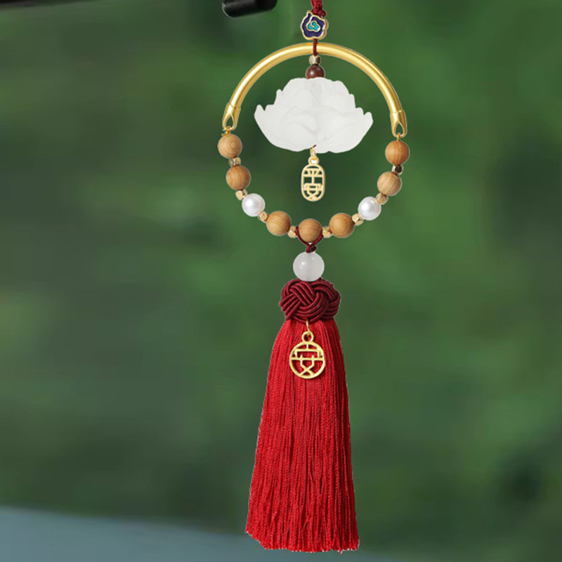 自動車はオリジナルの国風の新型の檀木祥雲の白瑠璃の蓮の花の高級な自動車のバックミラーのペンダントを掛けます。
