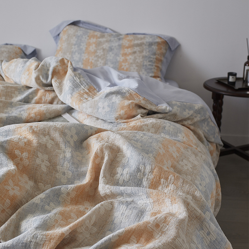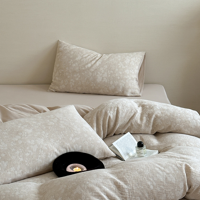 シンプルスタイルAタイプ 裸寝用二層しわガーゼ4点セット 純綿シーツと掛け布団カバー 1.5m1.8m 寝具
