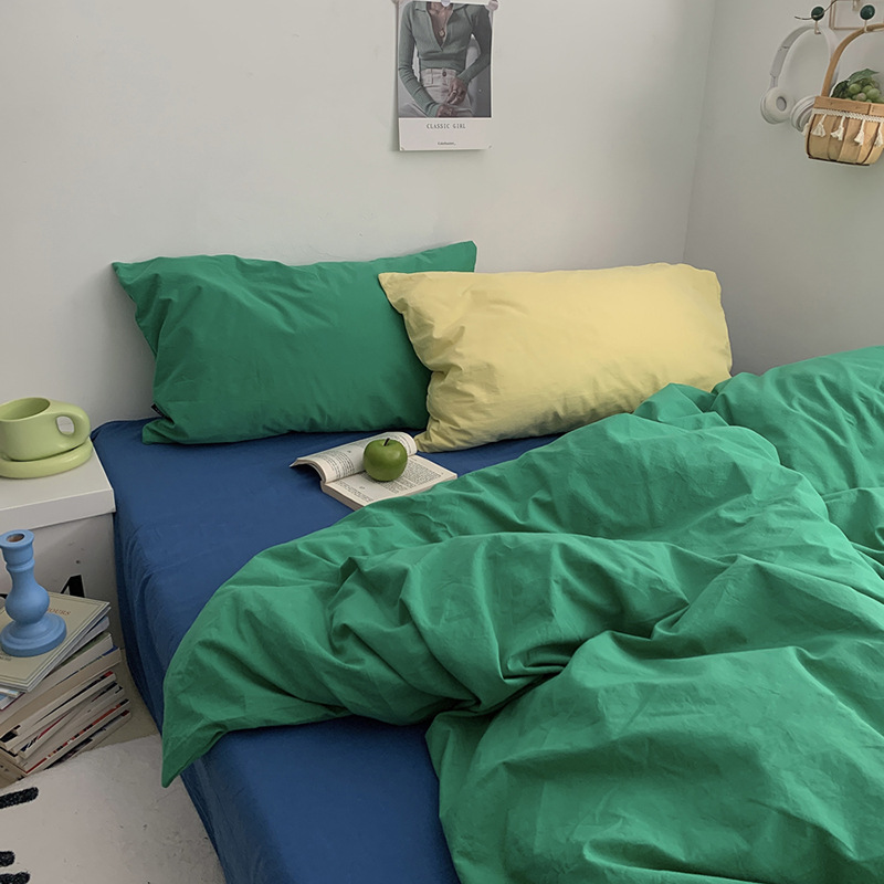 40本の純綿の復古小清新四点セットの肌に優しい純綿のシンプルな風のシーツがベッドカバーになっています。