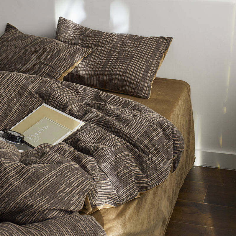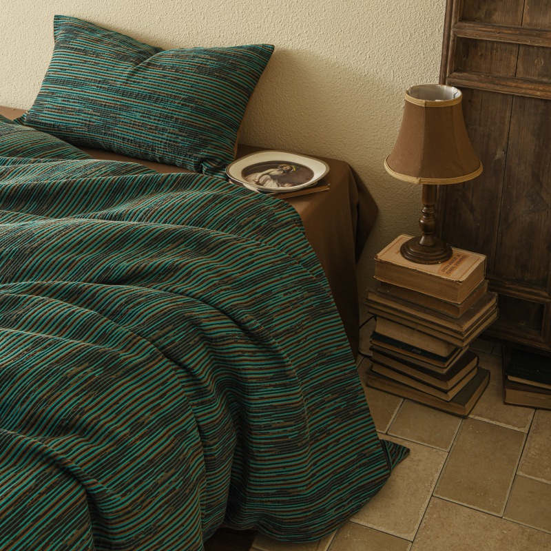 中古風色織ジャカード四点セット綿筋理紋布団カバーシーツタイプ純綿寂レトロ二人用ベッド用品