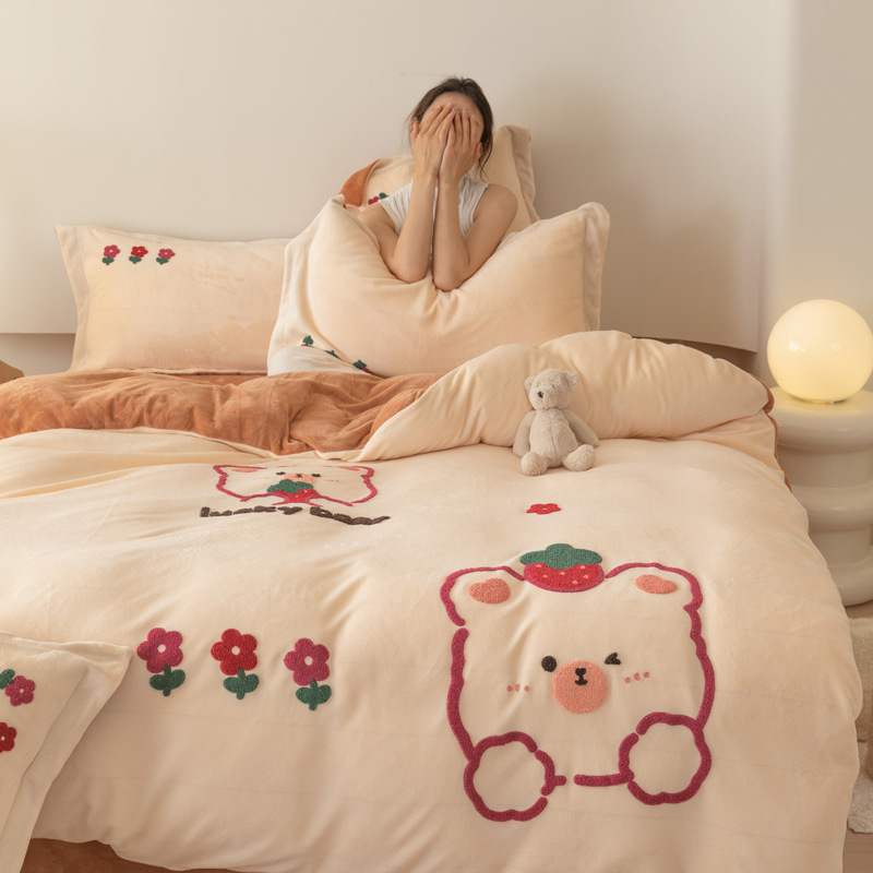 シンプルな中古風綿綿綿綿毛4点セット牛乳綿毛秋冬保温綿ベルベットA純綿Bパイルカバー卸売り