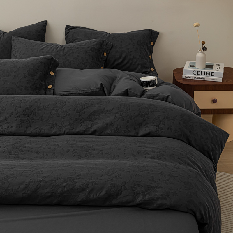 シンプルな風全綿三層水洗いジャカードボタン四点セット高級純色シーツカバーメーカークロスボーダー