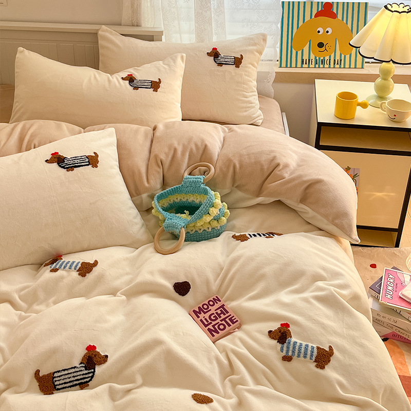 A級純綿厚手寝具4点セット 冬用厚手純綿ジャカードシーツ 掛け布団カバー ボックスシーツ3点セット 4個卸売