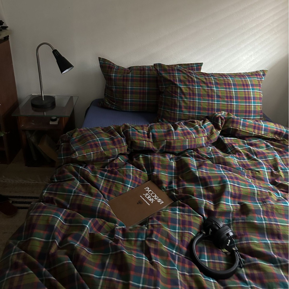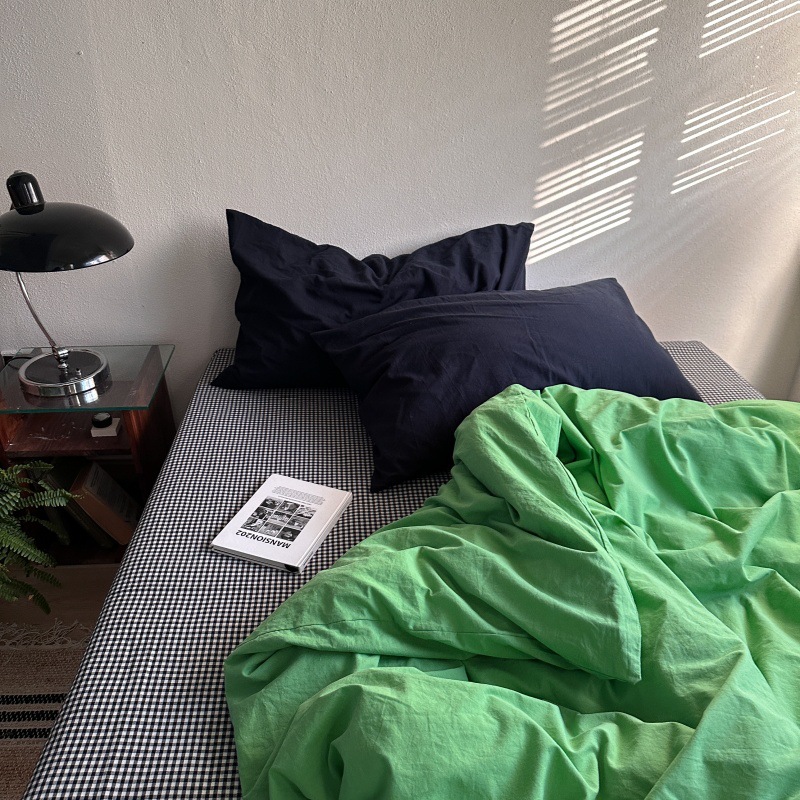 Ins博主風全綿水洗浄綿四点セット混載格子緑寮三点セット純綿シーツ布団カバー
