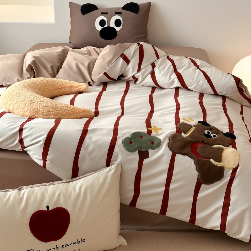 アニメ純綿水洗い綿四点セット熊茶話会かわいい純綿シーツカバー少女心寝具