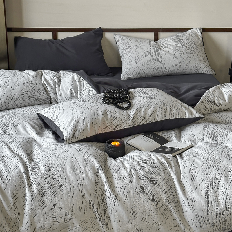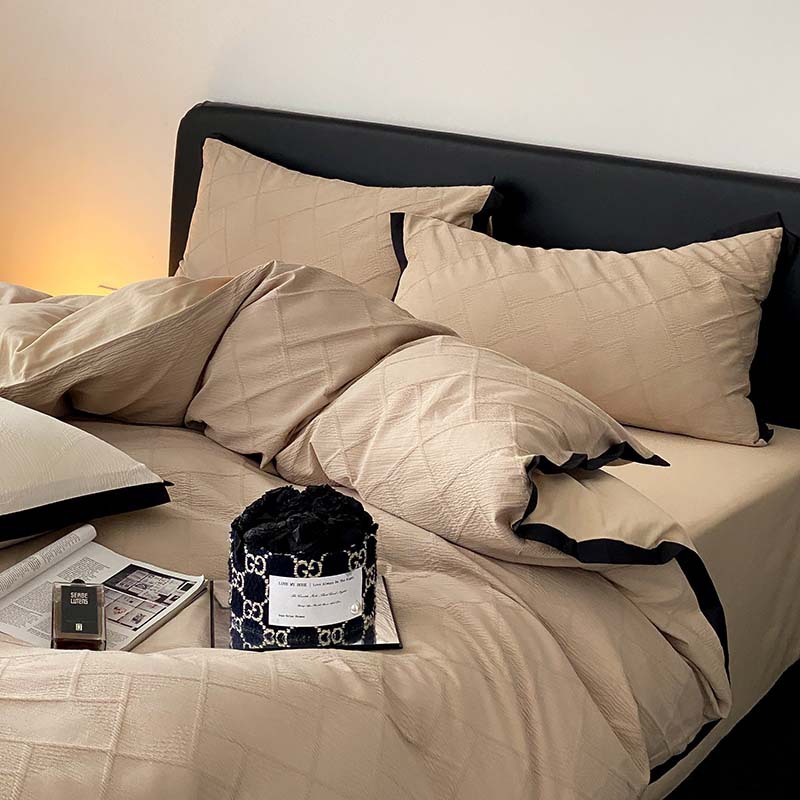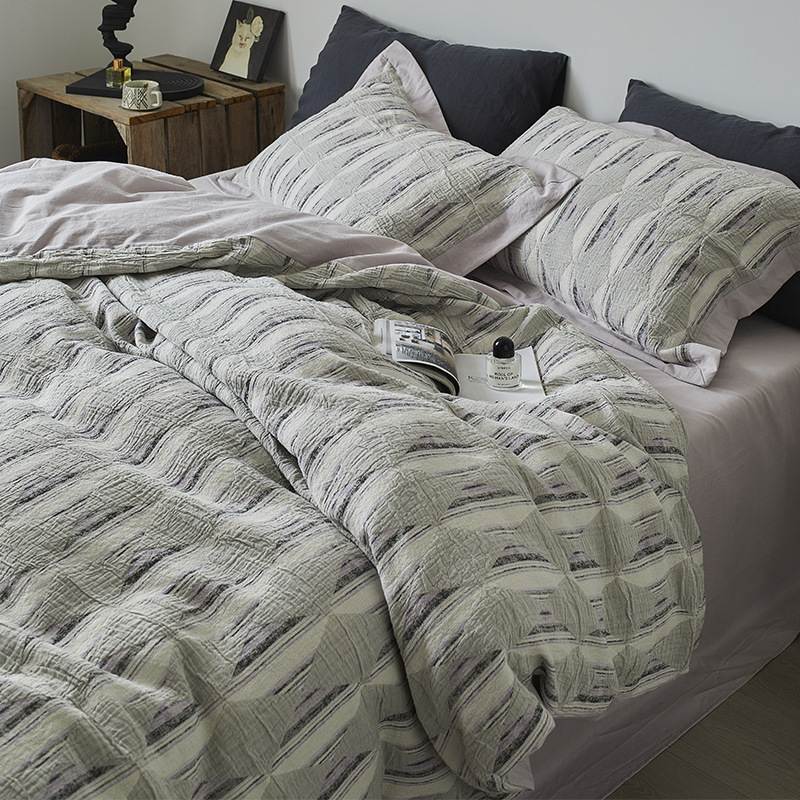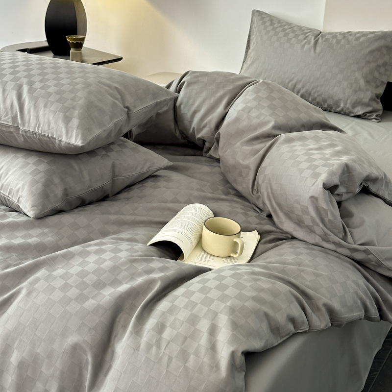 シンプルでレトロな空気感色織りジャカード綿の水洗い綿の4セットは四季を通じてベッド用品が柔らかい
