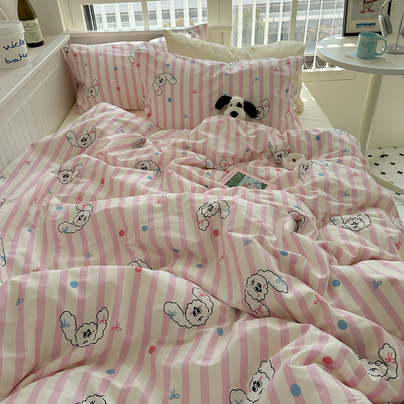 韓国ins少女粉純綿四点セット小清新可愛いアニメシーツ布団カバー三点セットベッド用品