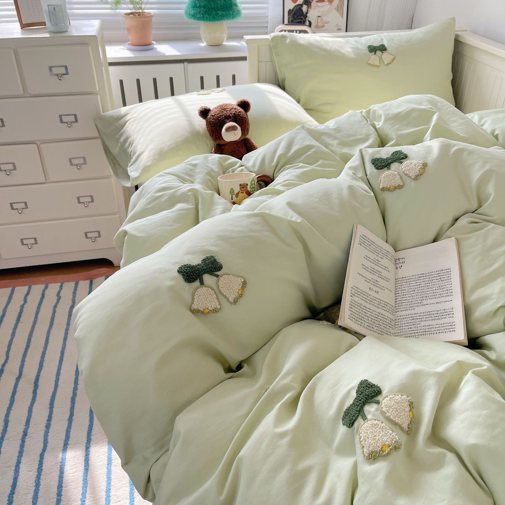 Ins小清新鈴蘭タオル刺繍純綿水洗綿四点セットシンプル純綿布団カバーベッド三点セット