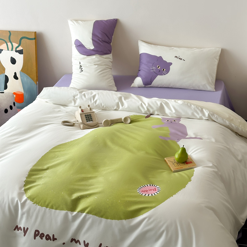 大梨子猫棉功サテン4点セット100純綿ins漫画布団シーツ3点セットベッド用品