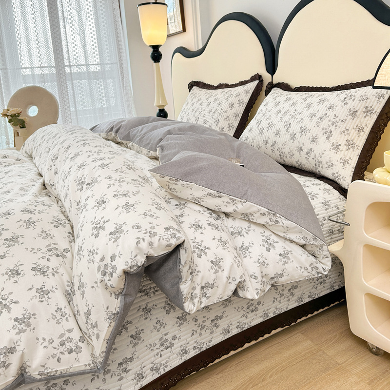 純綿ベッド4点セット純綿韓国式プリンセスベッド用品寮シーツ3点セットベッド笠田園花布団カバー