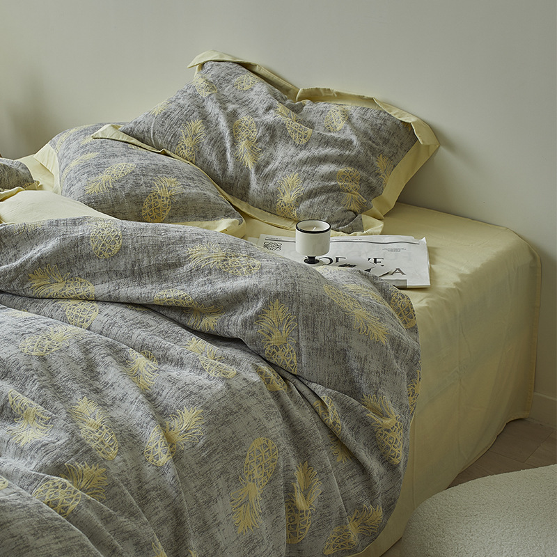 小清新な手描きの子供の趣味のパイナップルのベッドの上の4つのセットの純綿のジャカードの軽い豪華な水洗い綿はシーツの笠にはめられます。