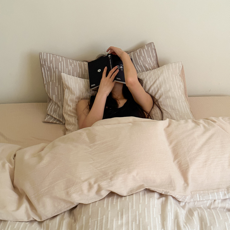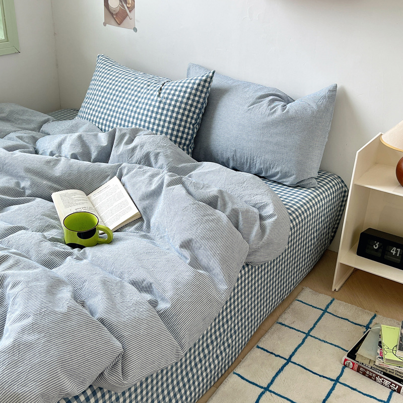 小清新砕花棉布団カバーシンプルな北欧風縞純綿布団カバー学生寮シングル二人シーツ