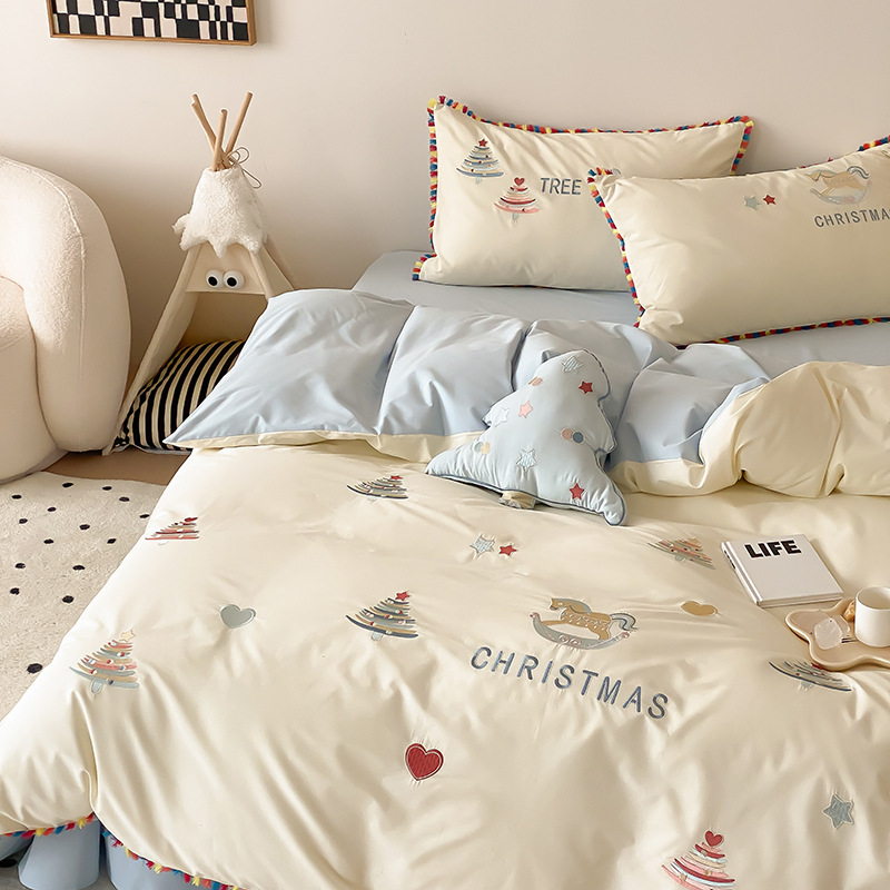 水洗い綿純綿ベッド用品4点セット綿2023新型学生寮シーツカバー3点セット