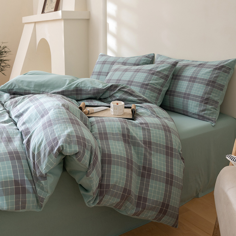 シンプルな綿100% の洗濯綿の単品は純綿のシングルルームの布団カバーの格子枕カバーの単品で三点セットができます。