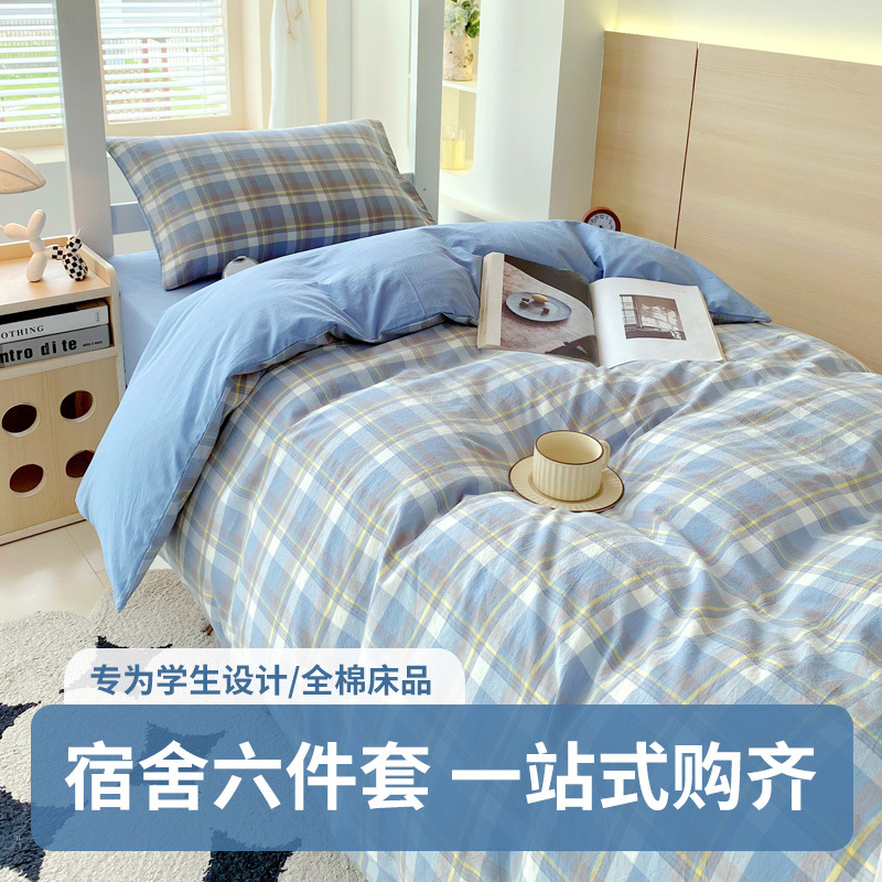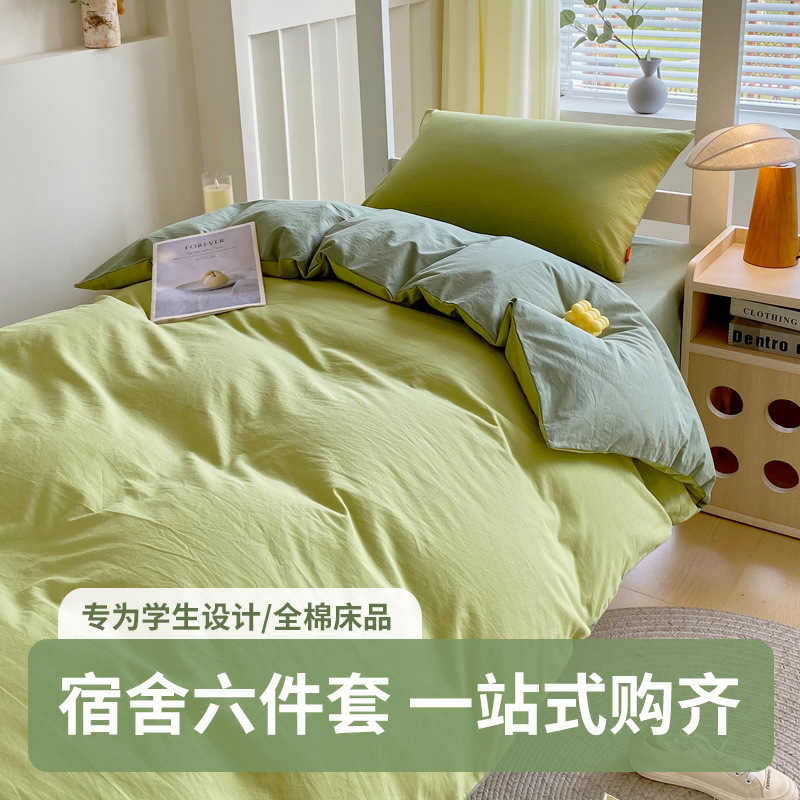 純綿学生寮3点セット、ダブルコントラストカラー純綿ベッドシーツ、掛け布団カバー、大学生寝具6点セット卸売