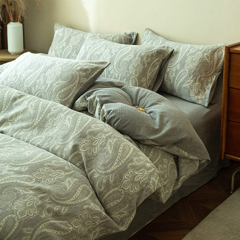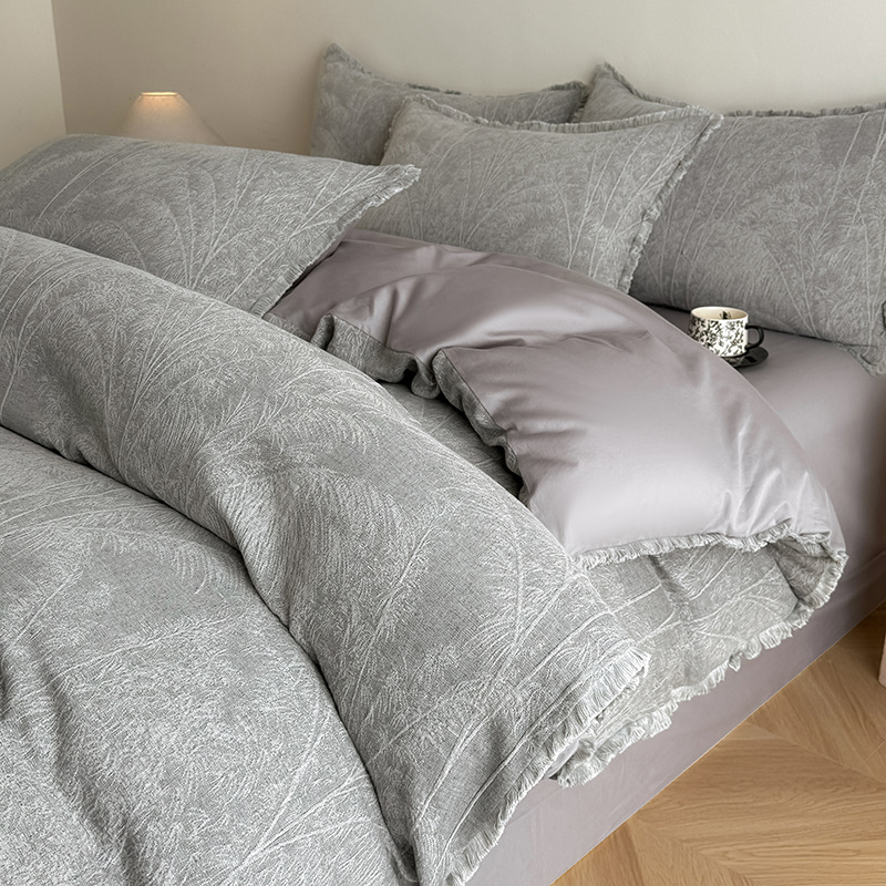 わびさび風クラスA綿ベッド4点セット純綿シーツジャガード幾何学キルトカバー肌に優しいボックスシーツ寝具